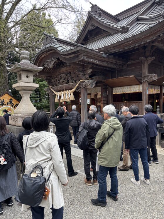 見学会では、田無神社の賀陽智之宮司に、当協会の活動主旨に深いご理解をいただき、普段は一般公開されていない田無神社御本殿(東京都指定文化財)を拝観させていただける特別なご高配を賜りました。撮影はできませんでしたが、御本殿は大変素晴らしいものでした。