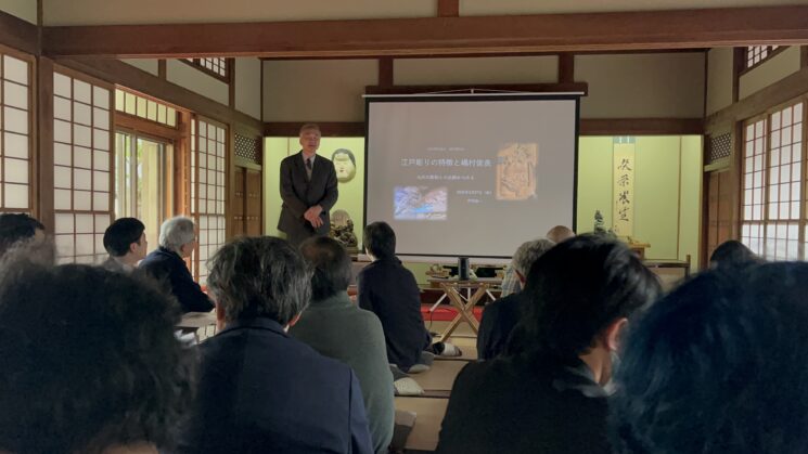 そして伊東龍一先生が「江戸彫物と島村俊表」と題してご講演されました。関東と九州の彫物の比較という大変興味深い内容に加え、制作方法の違いや地域性についても具体的にお示しいただきました。会場の皆さんが熱心に耳を傾け、メモを取る方が多くいらっしゃいました。